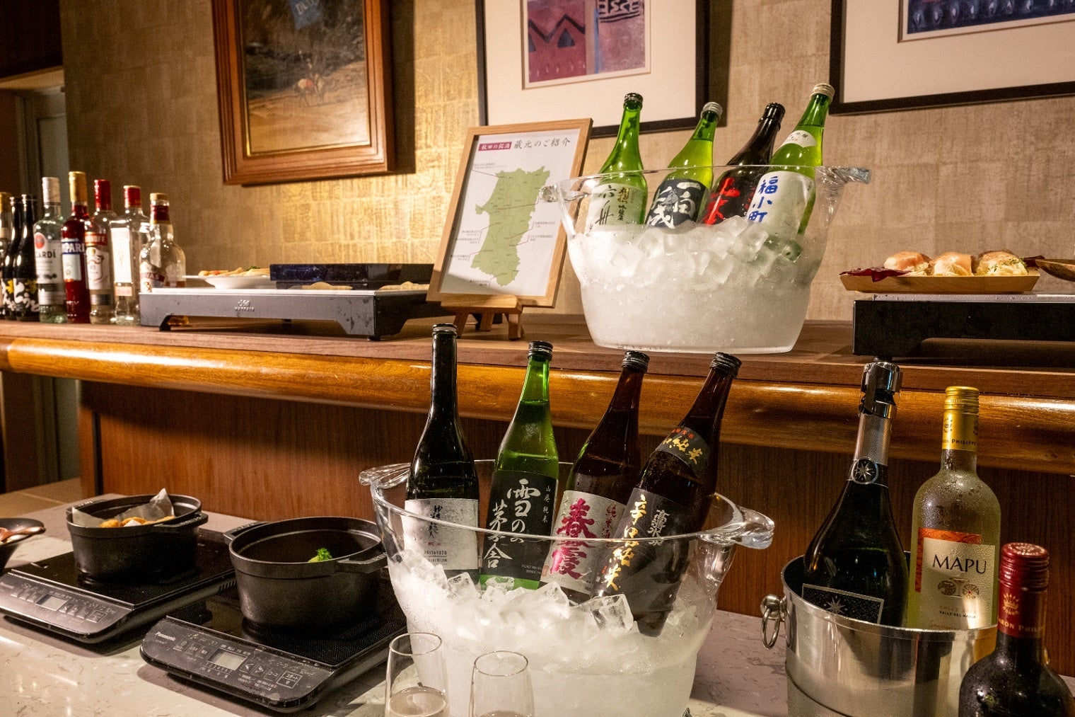 秋田の銘酒でディナーの前にくつろぎのひとときを。アルコールドリンクとオードブル各種をご用意。