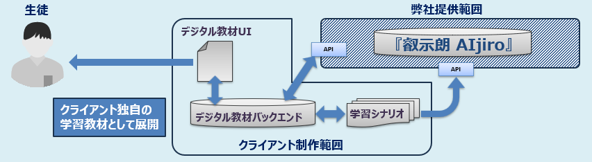 令和AIが提供を開始する『叡示朗 AIjiro』は、デジタル教材のバックエンドで使用できる、API製品です。