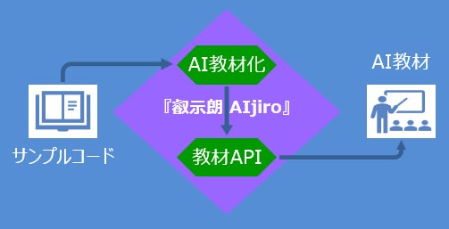 『叡示朗 AIjiro』は、簡単なサンプルコードと短い文章から、自動的にAI教材を作製します。