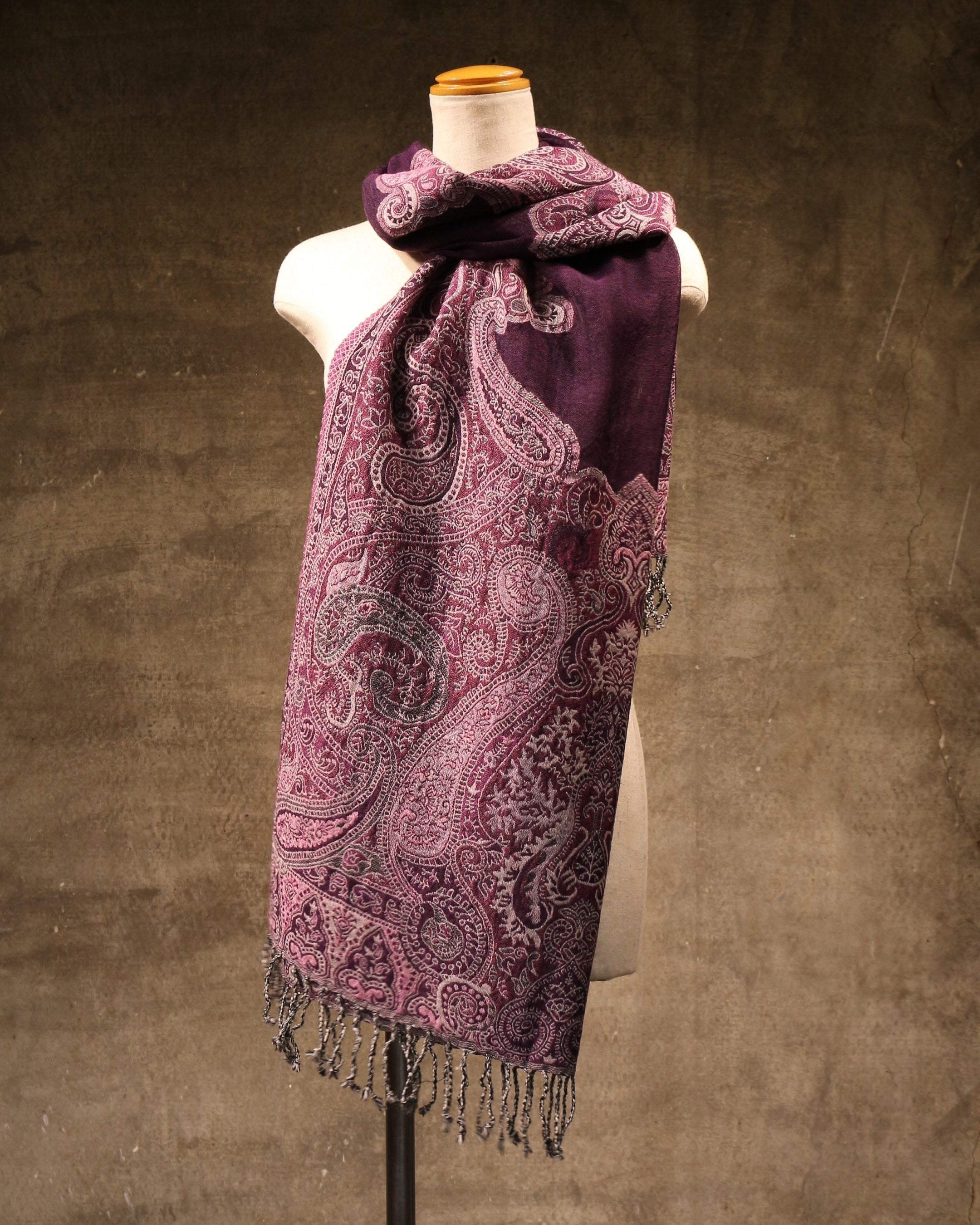 インド・カシミール地方の伝統工芸品、カシミール刺繍ストール。手刺繍手織りで一つ一つ丁寧に時間をかけて生み出されます。寒さが厳しい季節にぴったりのウール素材に、繊細で精巧な刺繍が施されており、さっと羽織るだけで高級感を演出してくれます。
