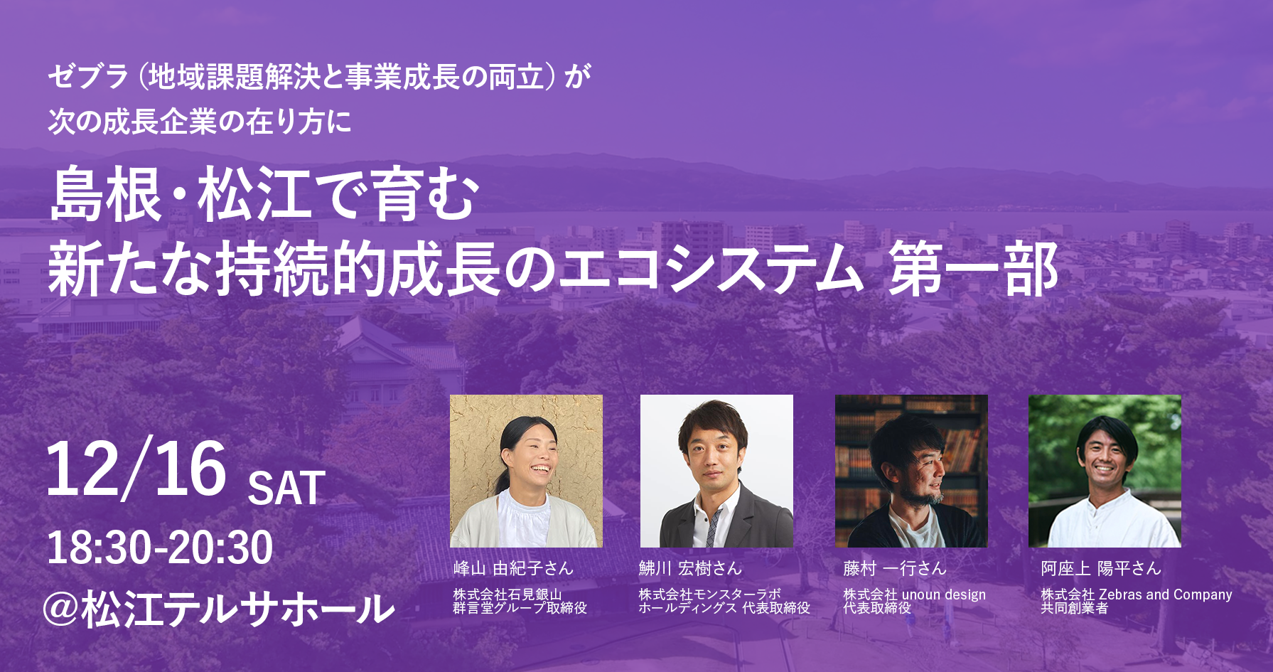 〜ゼブラ(地域課題解決と事業成長の両立)が次の成長企業の在り方に〜島根・松江で育む新たな持続的成長のエコシステム