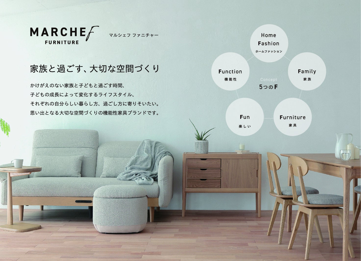 「MARCHEF」は、かけがえのない家族と子どもと過ごす時間、子どもの成長によって変化するライフスタイル、それぞれの自分らしい暮らし方、過ごし方に寄り添い、思い出となる大切な空間をつくるための機能性家具ブランドです。