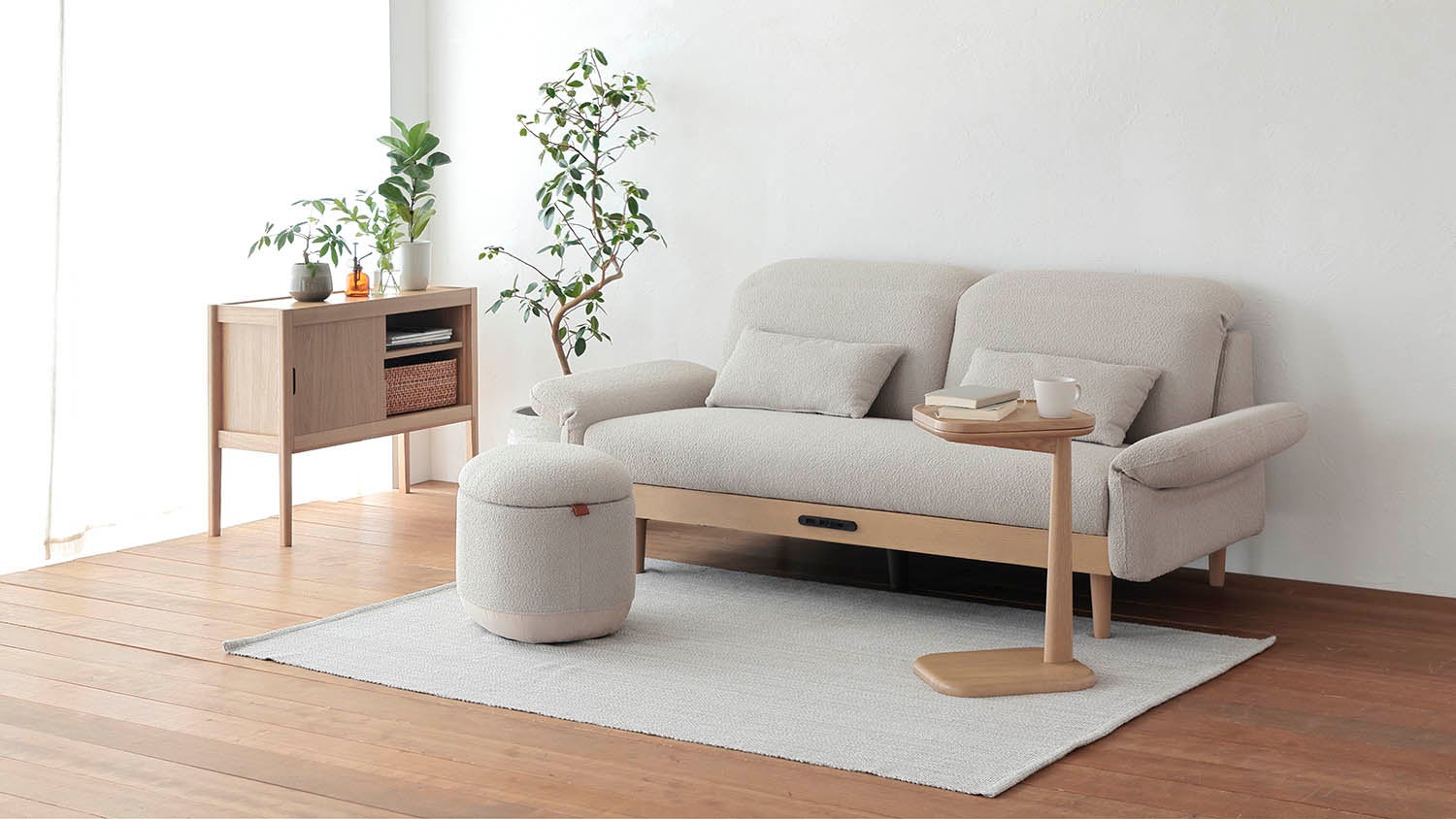 日常的に変化する家族の暮らしに対応。背もたれ・アームが14段階可動するソファ