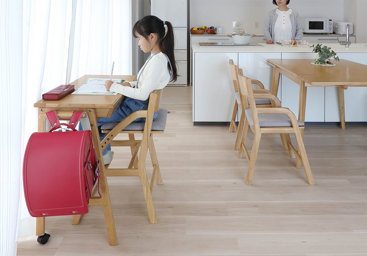 就学後の児童を対象にした「E-Toko」シリーズは、ダイニング学習家具の先駆けとして、1200人の子どもの体型調査から得られたデータをもとに設計したロングセラー商品「E-Toko Kids Chair」のリニューアルモデルなどを多数出展いたします。