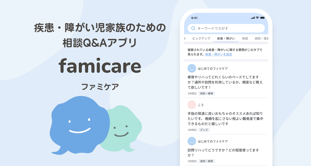 疾患児・障がい児家族の相談QAアプリ「ファミケア」を公式リリース、育児やケアの悩みを相談・解決
