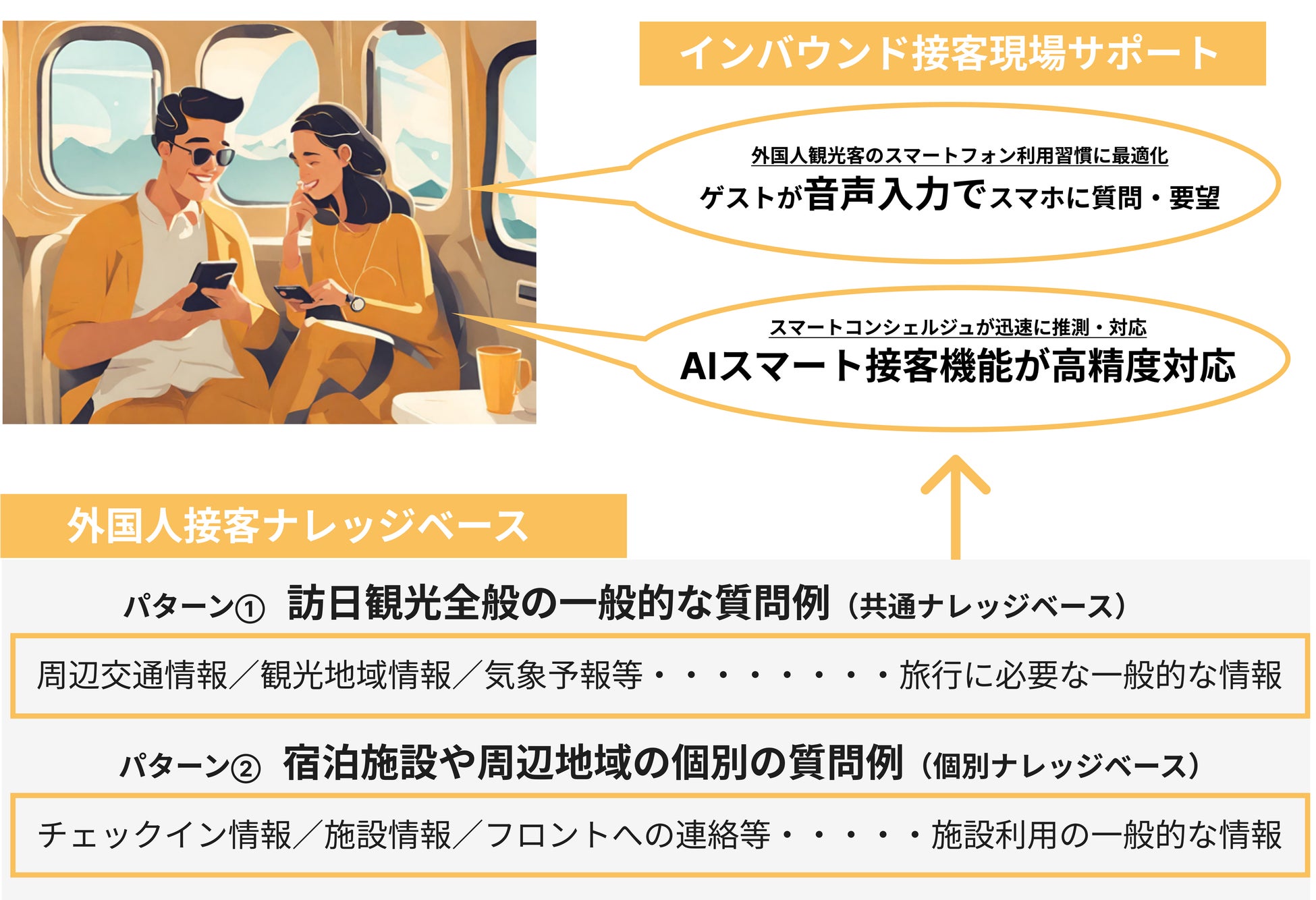 ・顧客対応方法:宿泊ゲストがご自身のスマートフォンからテキスト・音声入力で質問・要望