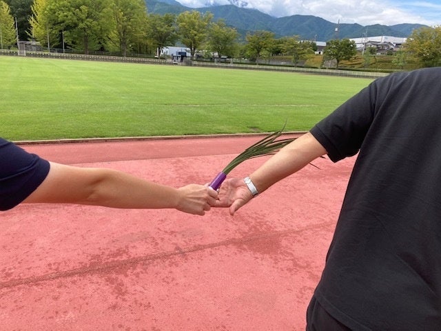 ◇ニレーとは、韮崎の市名にちなんだニラ(造形)のバトンを繋ぐリレーです!