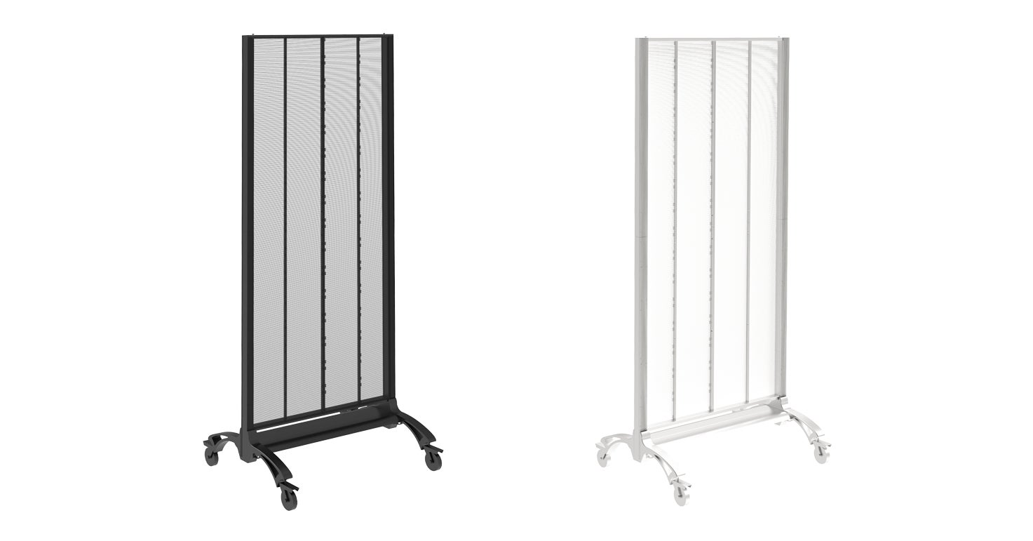 Parete(パレーテ)、Aeris(エアリス)の両シリーズは、キャスター付きスタンドタイプで、簡単な組み立てで製品が完成するため、短い期間で納品が可能です。