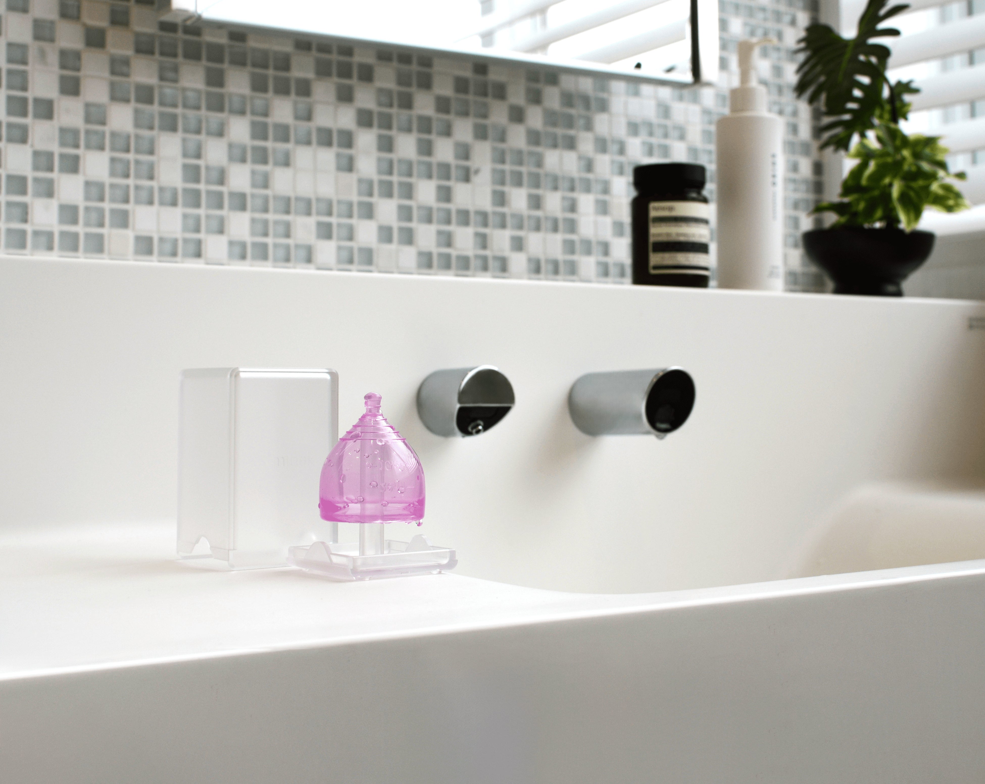 feminakの月経カップは、徹底的に試作を繰り返してたどり着いた、使いやすく汚れが付きにくいフォルムです。生理用品に見えないつややかで清潔感のあるデザインを目指しました。