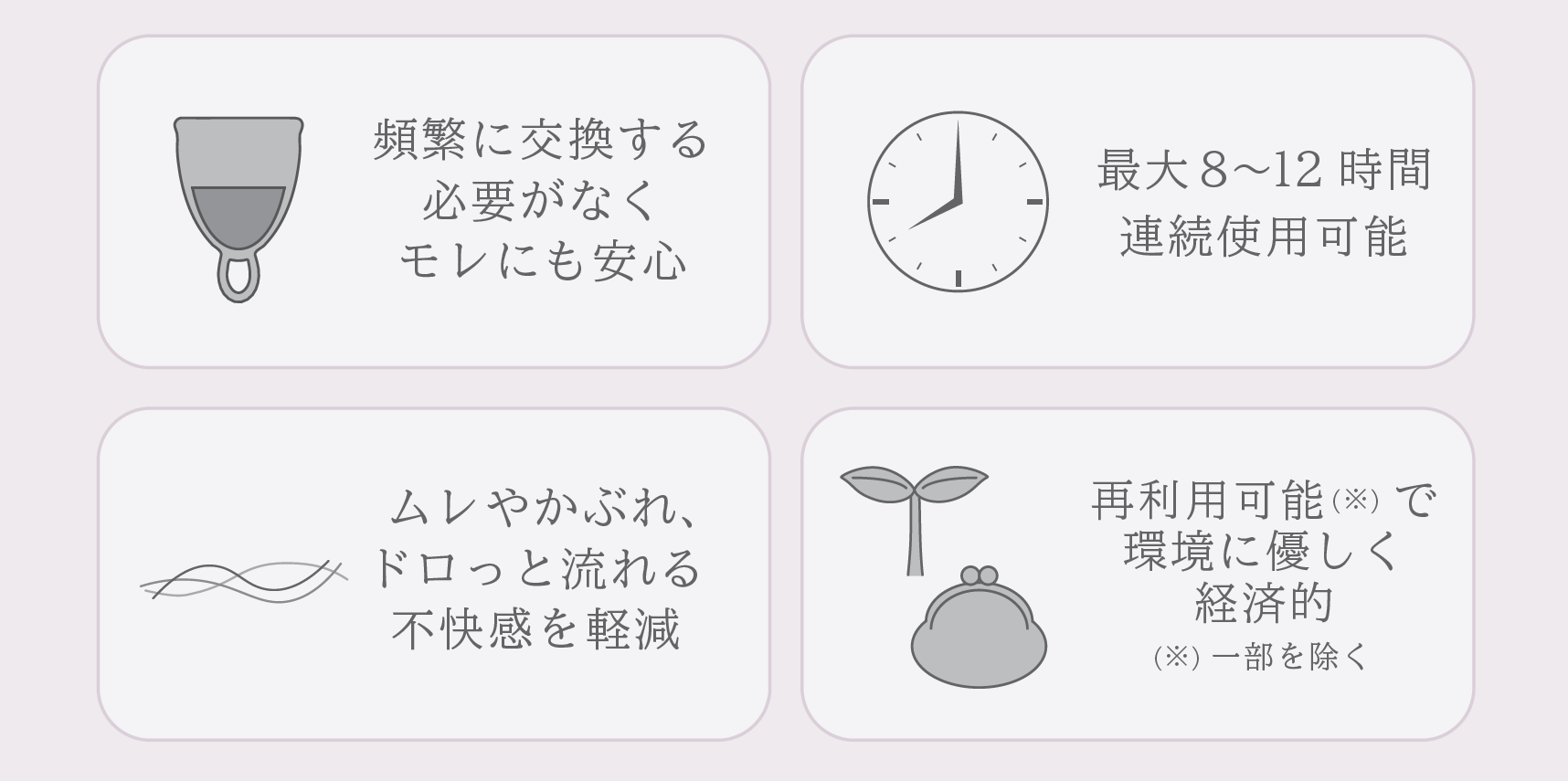 月経カップとは第3の生理用品とも呼ばれる膣内に装着するカップ状のもので、生理中の様々な不快感を軽減します。欧米では広く普及しており、日本でも認知度が急上昇中のアイテムです。