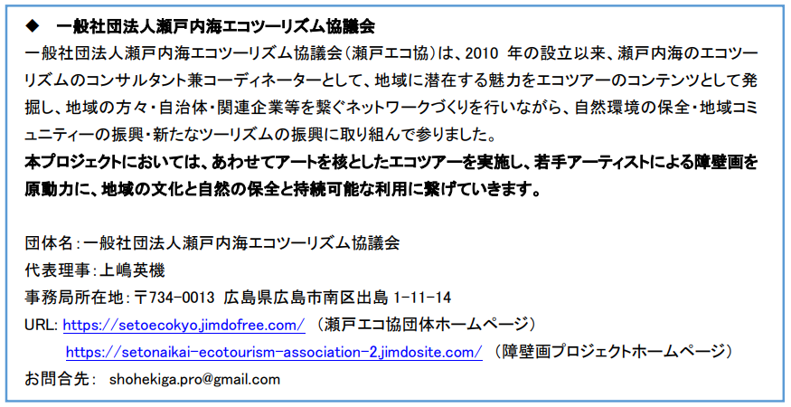 「障壁画プロジェクト」ホームページ https://setonaikai-ecotourism-association-2.jimdosite.com/