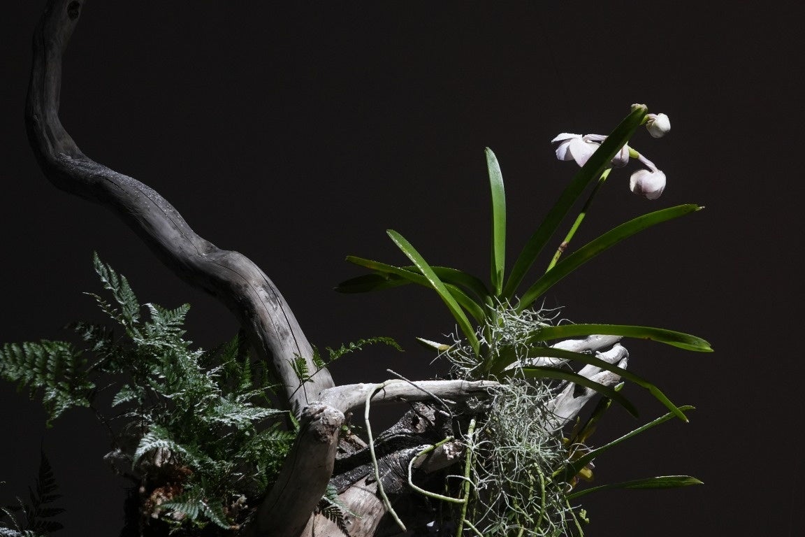 今回も作品のコンセプトとなる人類が初めて花を生けた時の状況を仮設し、極めてアナログな技法を用いながらも鑑賞者の想像力を発動させ、時間軸や体感温度変化の錯覚も誘発。最後は雑音が消え去り極々シンプルな植物との対話のみが存在する空間創りを今回は日本以外の場所で試みます。