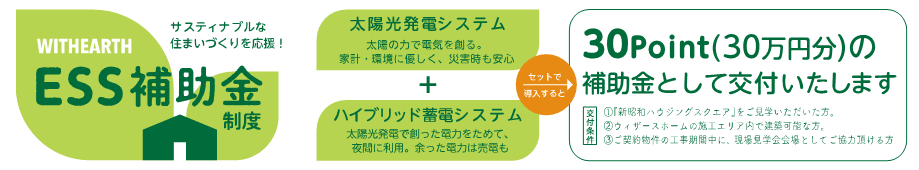 「WITHEARTH ESS補助金」が最大30万分もらえる