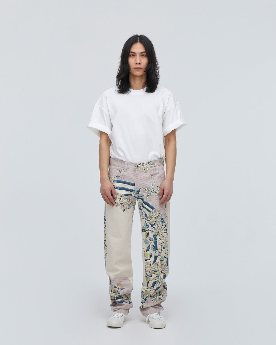 京友禅と同じ手法により、12色の天然染料のみで描かれたプリント。トルコ産100%オーガニックコットンを使用したプリントデニム。