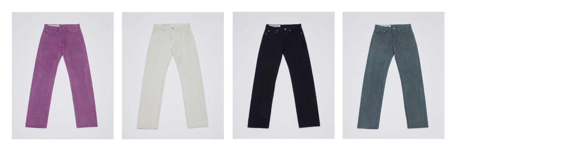 環境に配慮された天然染色による、繊細な発色の21色展開。ヒップ&レッグがもたつかないスタイリッシュなシルエットを実現したセルヴィッチデニム。