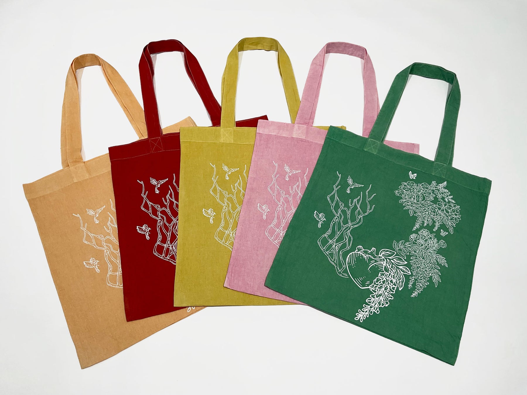 POP UP STOREにてデニムをご購入の方に、カラーデニムと同じ新万葉染めで染色したトートバッグをプレゼント。※数量限定。無くなり次第配布終了となります。