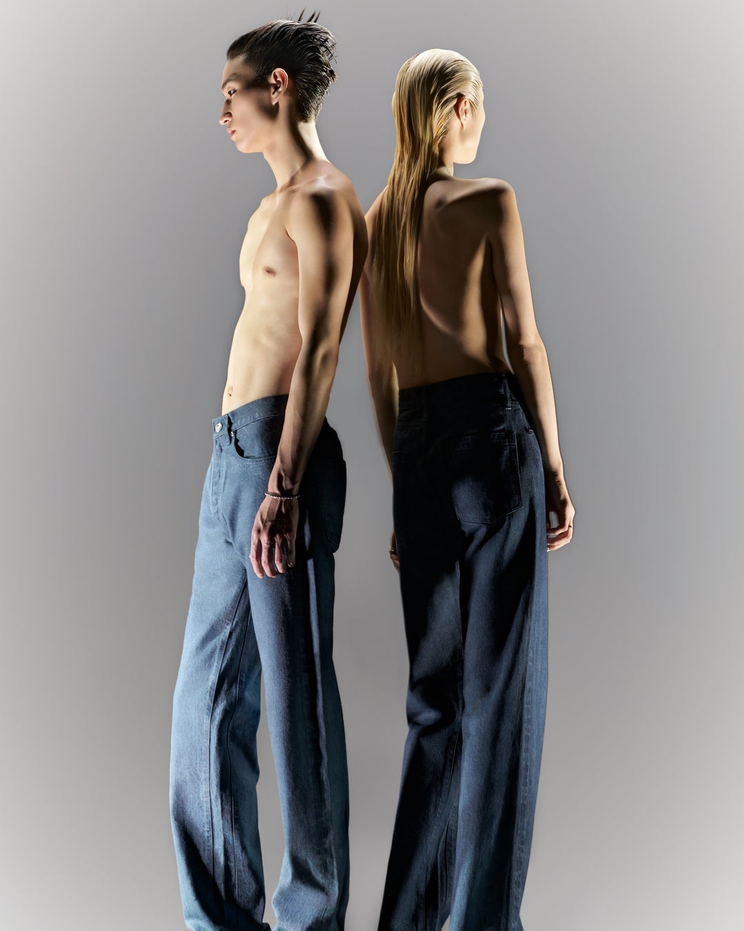 9-jour.公式オンラインサイトやショールームでもまだお披露目していない、新作のドレスデニムをお試し、ご購入いただくことができます。ベーシックカラーの2色でテーパード(税込¥68,200)とワイド(税込¥70,400)の2型、ユニセックスの3サイズ展開です。この機会にぜひご覧ください。
