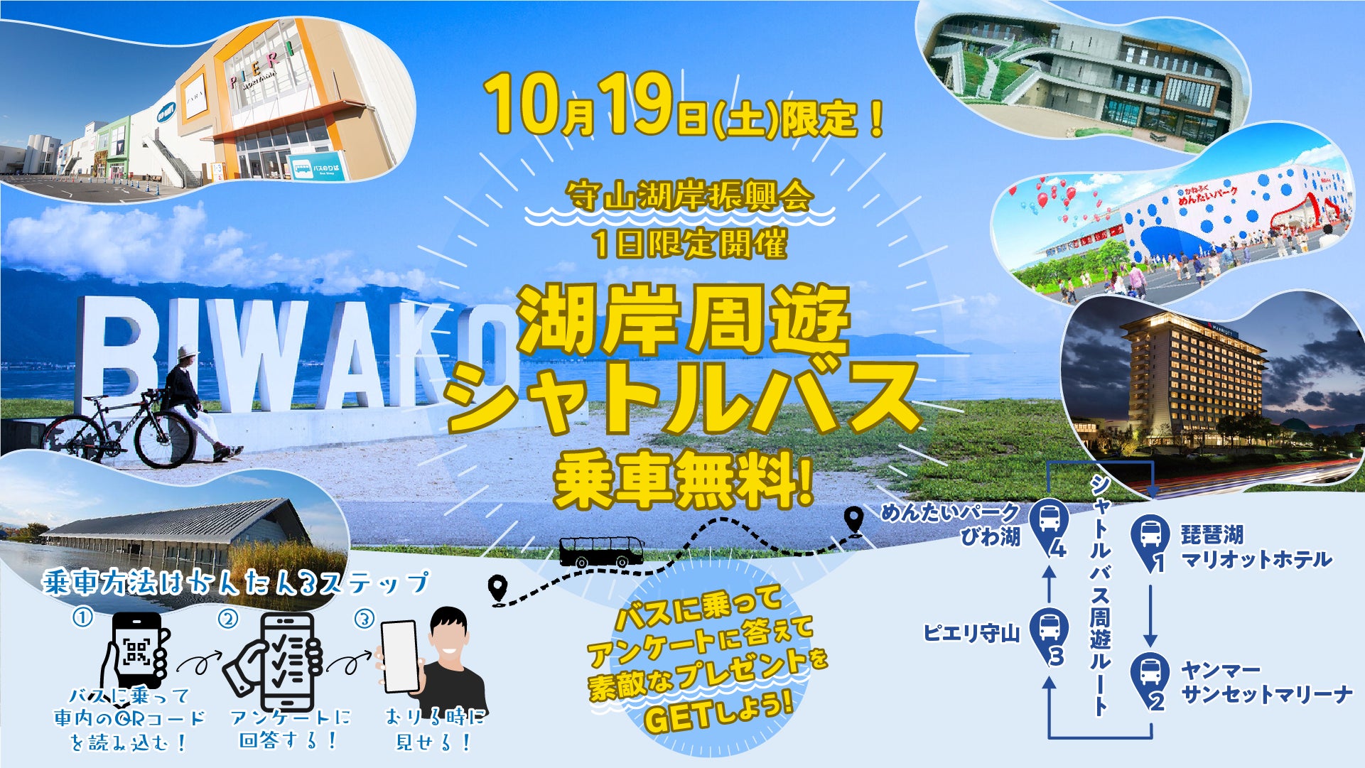 LAKE BIWA TRIATHLONと、守山湖岸振興会とのコラボレーション企画として、大会が開催される前日の10月19日(土)限定で、無料の周遊シャトルバスを運行します。
