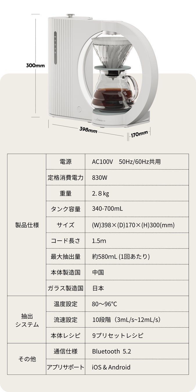トップバリスタに愛用されるHARIO V60ドリッパーと、水量、水温、流速を緻密に制御する、抽出コントロールのテクノロジーが融合。