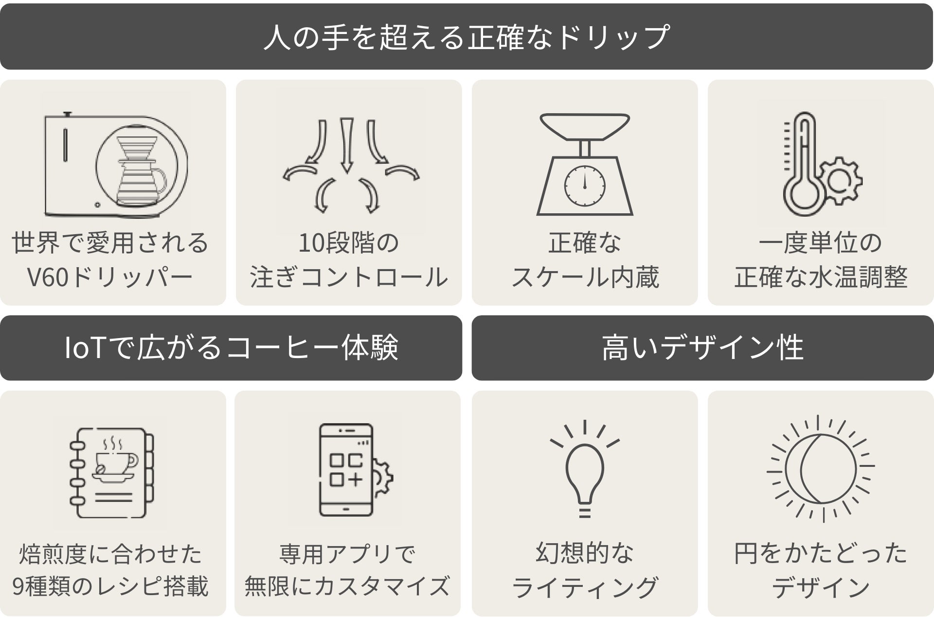 「HIROIA」は「HARIO株式会社」の関連会社で、先進的なIoT(Internet of Things)テクノロジーとハンドドリップの技術を組み合わせた、スマートコーヒー機器メーカーです。