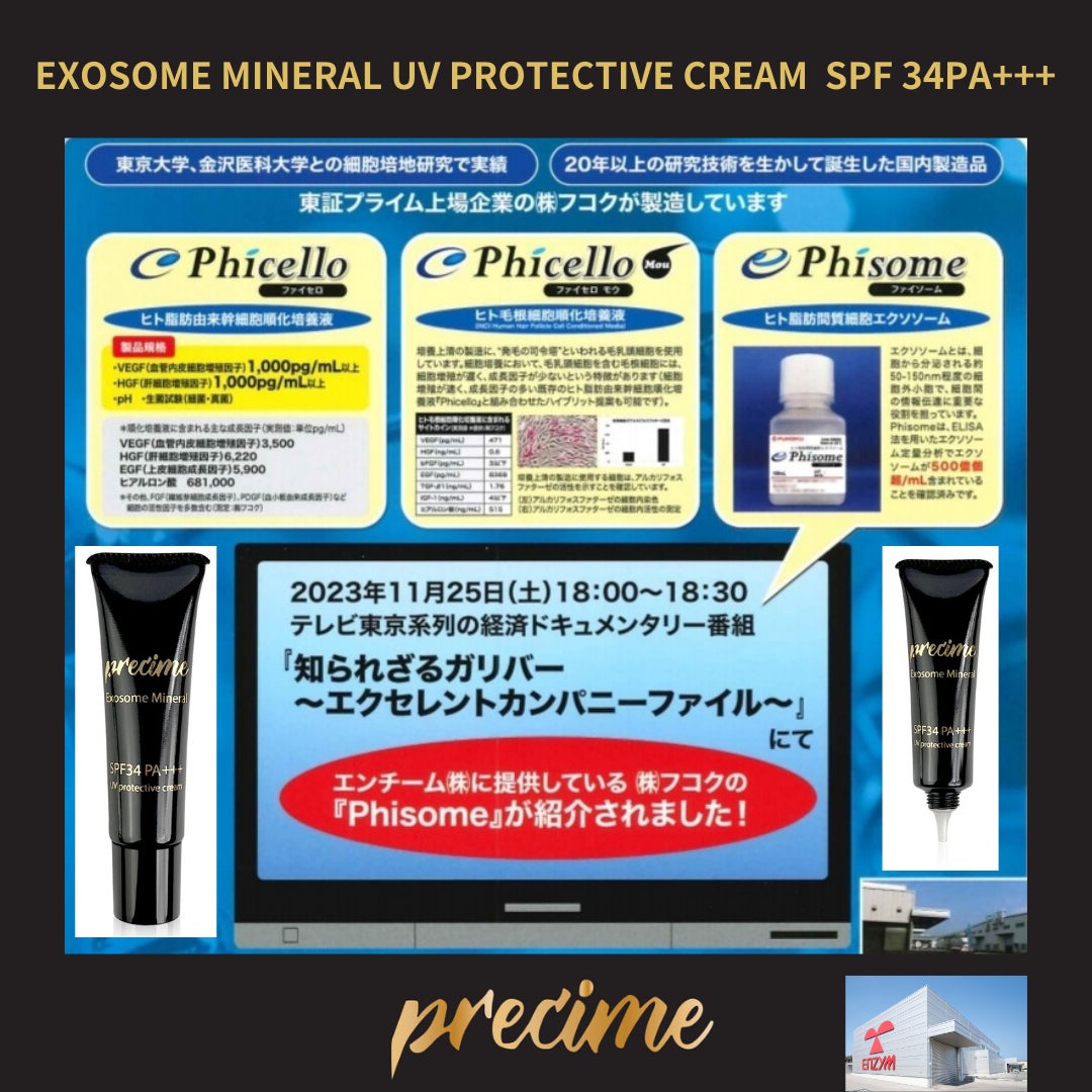 エクソソームミネラルUVプロテクティブクリームの原料を提供している(株)フコクの『Phisome』がテレビ東京『◎知られざるガリバー~エクセレントカンパニーファイル~』に紹介されました。●放送日:11月25日(土)18:00~18:30