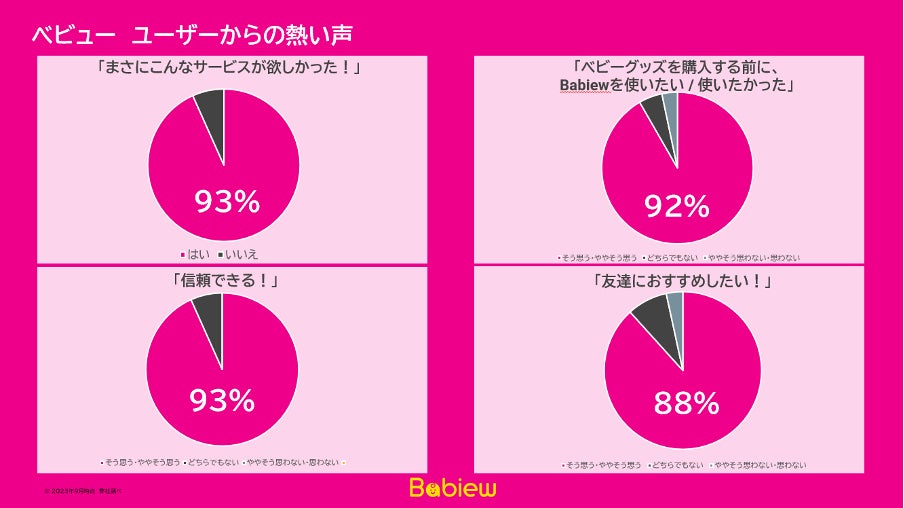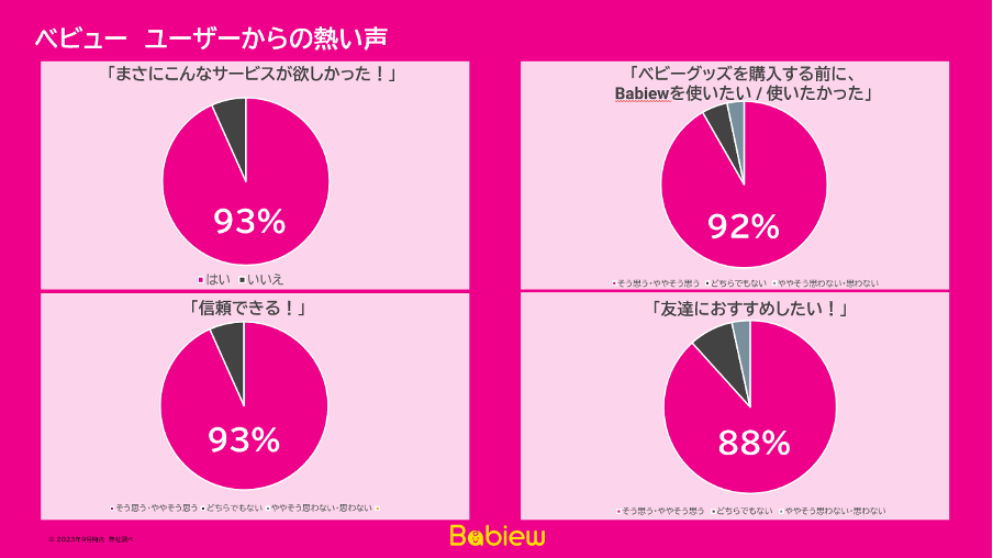 また、公開直後に93%のユーザーが「まさにこんなサービスが欲しかった」「信頼できる」と回答しており、「ベビーグッズ購入の際に参照したいサイト」として高い評価を得ています。