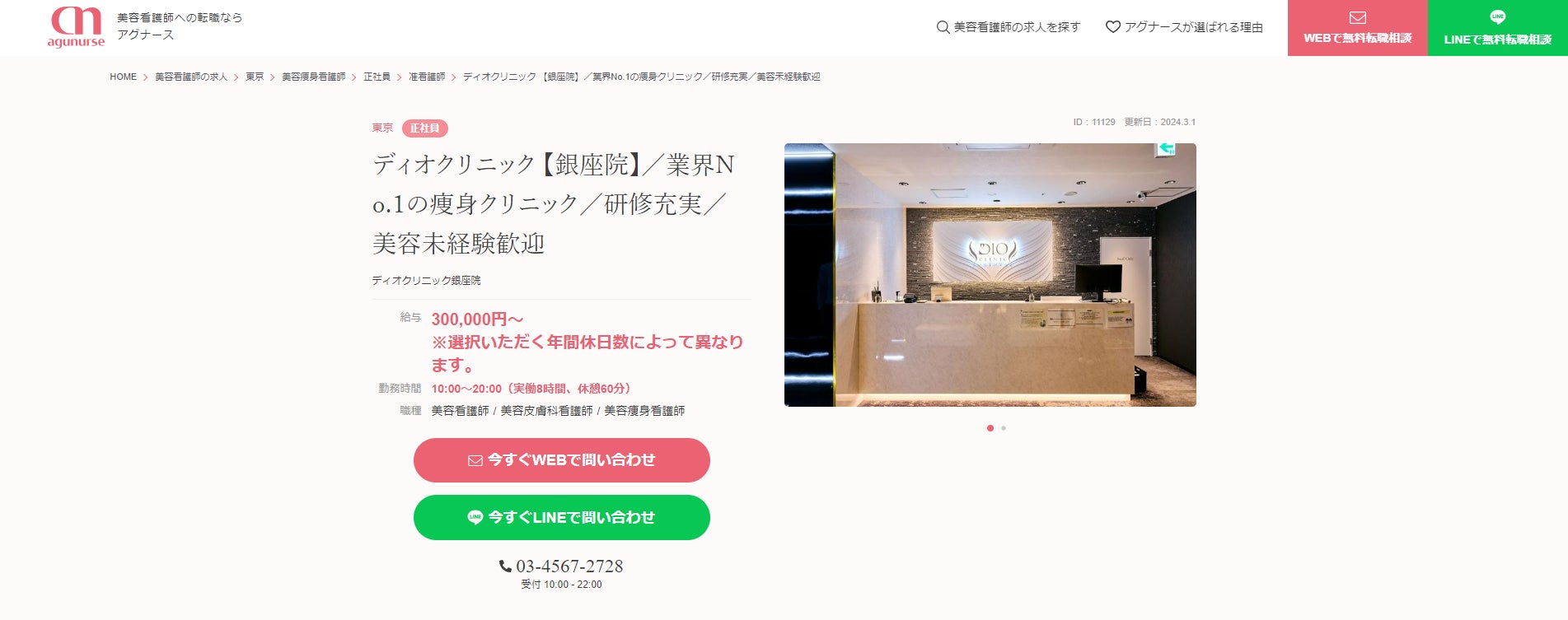 ご参考ページ:https://agunurse.jp/recruit/dio-clinic-ginza/
