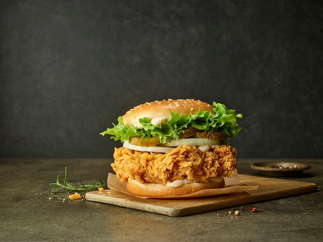鶏もも肉を丸ごとパティとして使用。2005年の販売開始以来、MOM'S TOUCHの看板商品であり続けるシグネチャーバーガーです。注文と同時に新鮮な鶏肉に衣をまとわせて揚げるチキンは、サクサクした食感と口の中をやわらかく包み込むジューシーな肉汁が、たまらない美味しさを演出します。