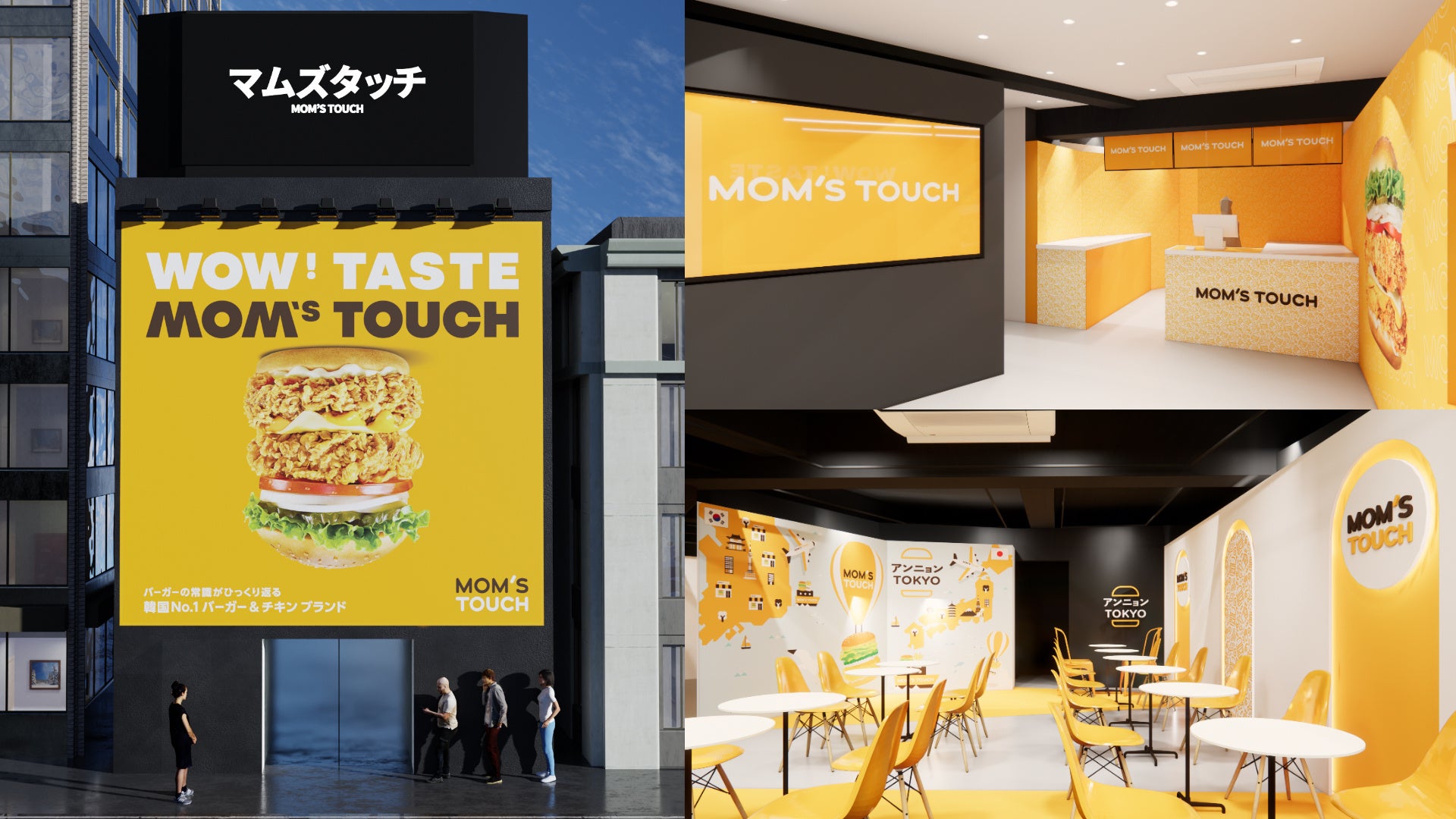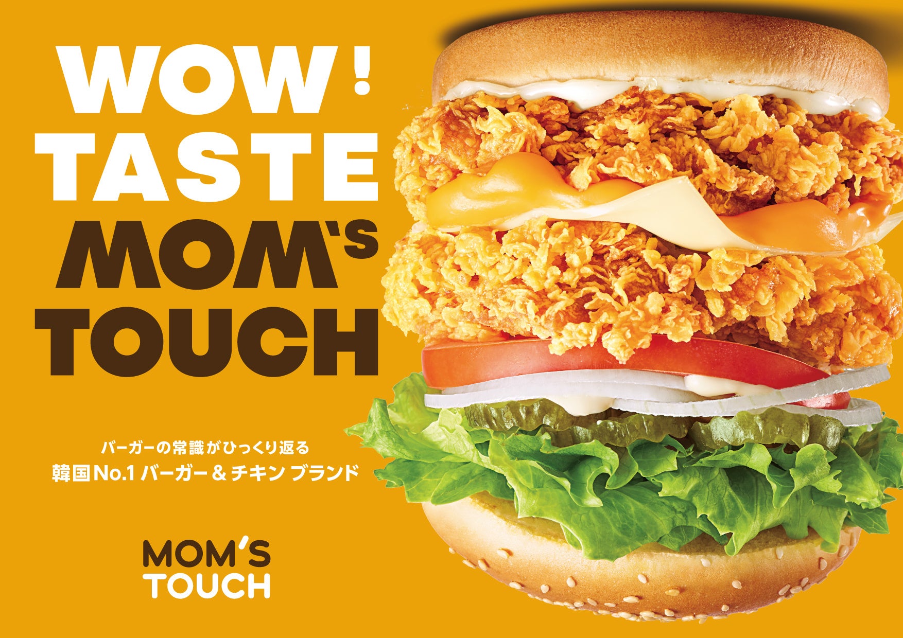 『MOM'S TOUCH』は、韓国を中心に1,400店舗以上を展開するバーガー&チキンブランドです。母親が子どもに手間を惜しまず思いやりを込めて料理をするように、MOM'S TOUCHも注文を受けてから作ることを徹底するなど、思いやりを込めた商品を1997年から提供し続けています。