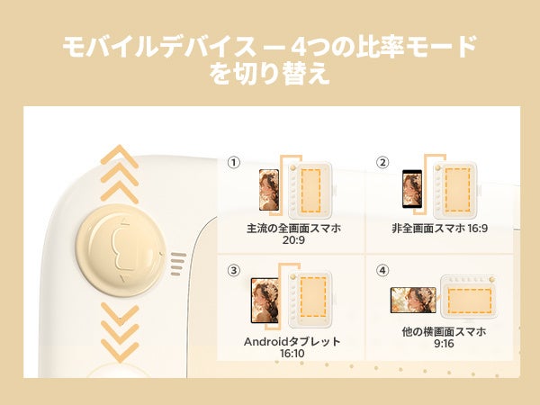 左上隅に比率調整可能な切り替えボタンを搭載しているため、異なる4つのモード(20:9、16:9、16:10、9:16)を自由に変換して、デバイスの画面比率に応じて対応する描画領域を選択できます。更に、6個のグループ化のショートカットキーで個人の使用習慣に合わせて、エクスプレスキーを自由に設定でき、操作がより簡単になり、作業効率を上げます。