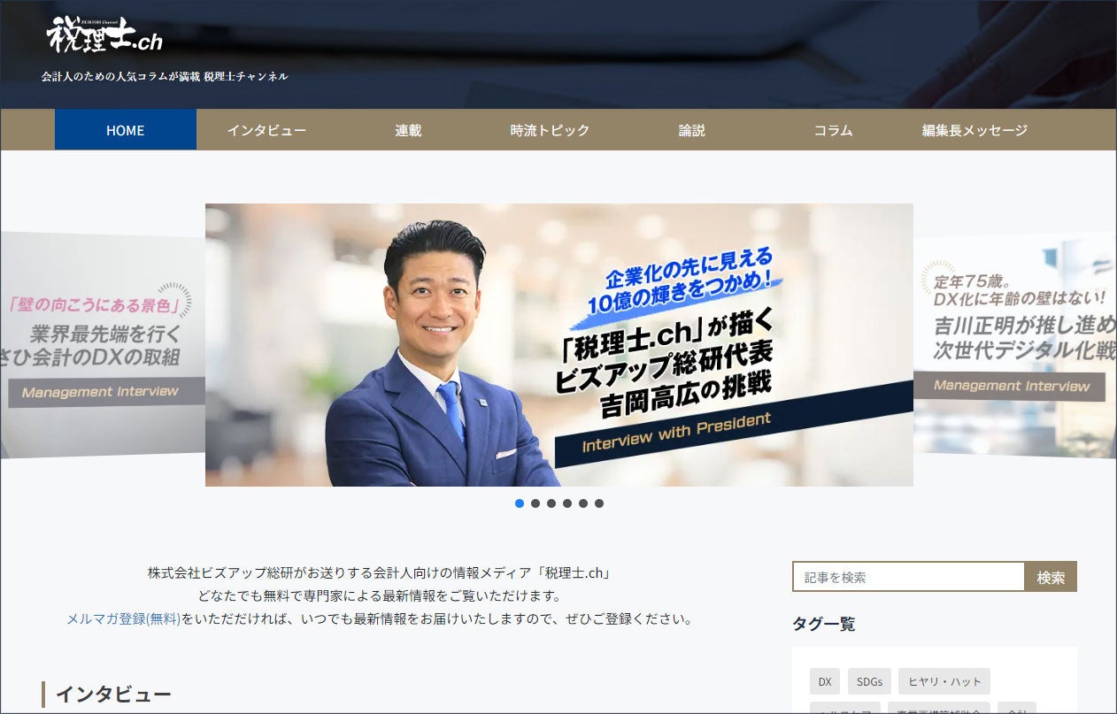 総合型研修サービスを展開する株式会社ビズアップ総研(本社:東京都港区、代表取締役:吉岡高広、以下「ビズアップ総研」)は、会計業界に特化した情報メディアサイト「税理士.ch(ゼイリシチャンネル)」をオープンいたしました。