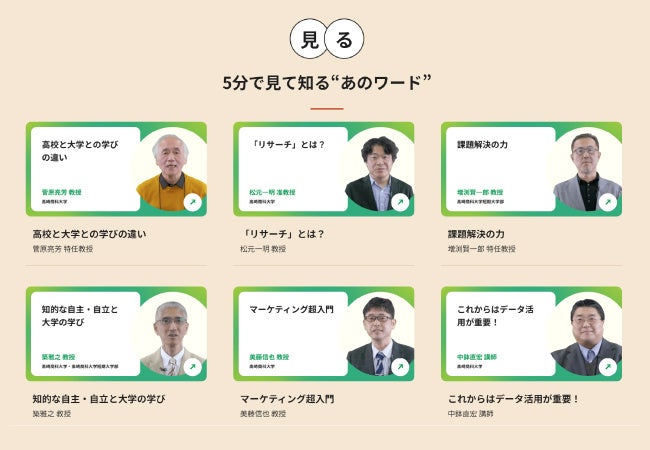 高崎商科大学・高崎商科大学短期大学部(群馬県高崎市・学長:築雅之)はオープン教育リソースとして、講義ビデオを一般公開した。「リサーチとは」「AIの話」「マーケティング超入門」などのテーマごとに、⼤学や短期⼤学部で行われる講義のエッセンスを3分~5分の動画にまとめている。