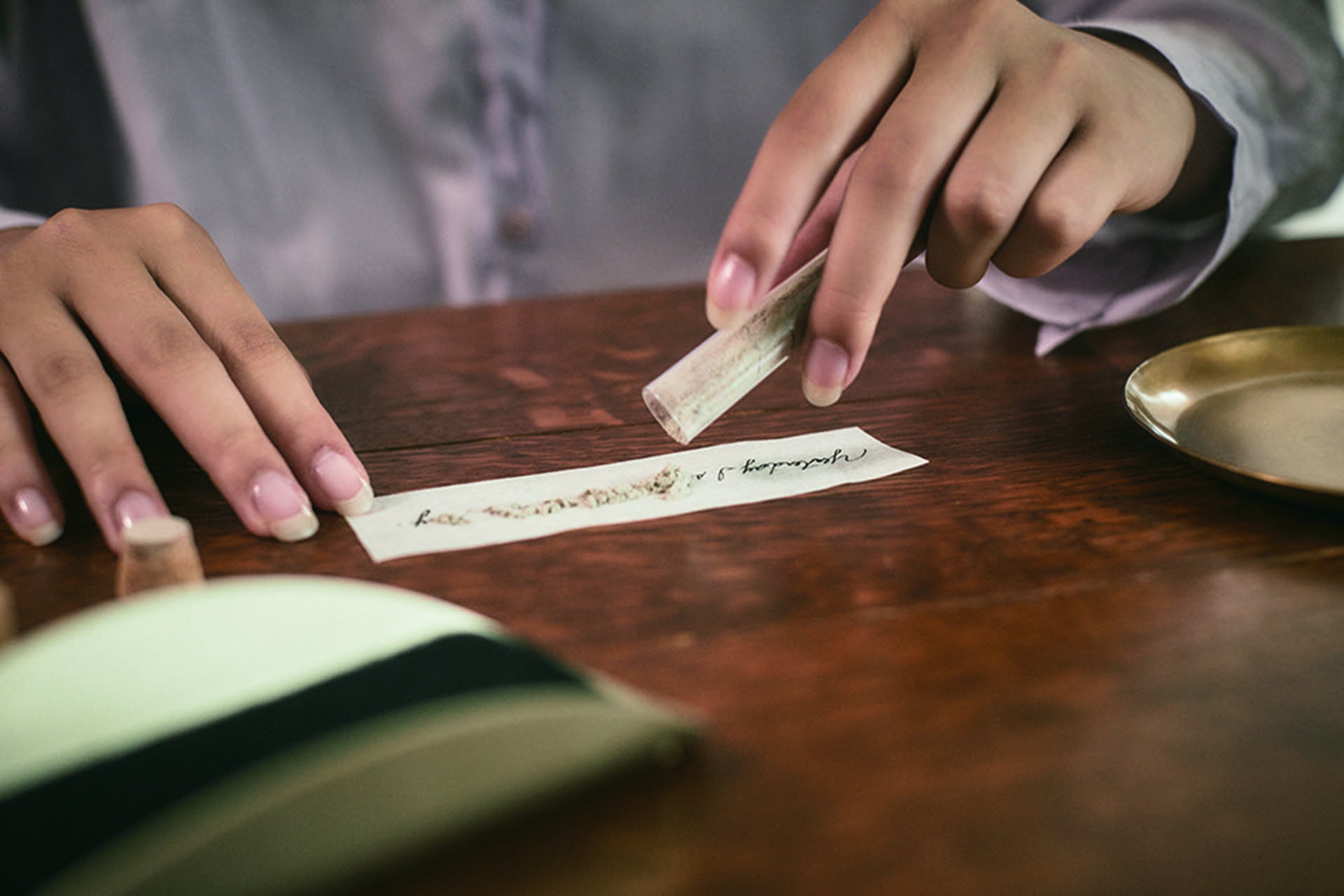 大切なひとへの想いを小さな手紙につづり、粉末のお香