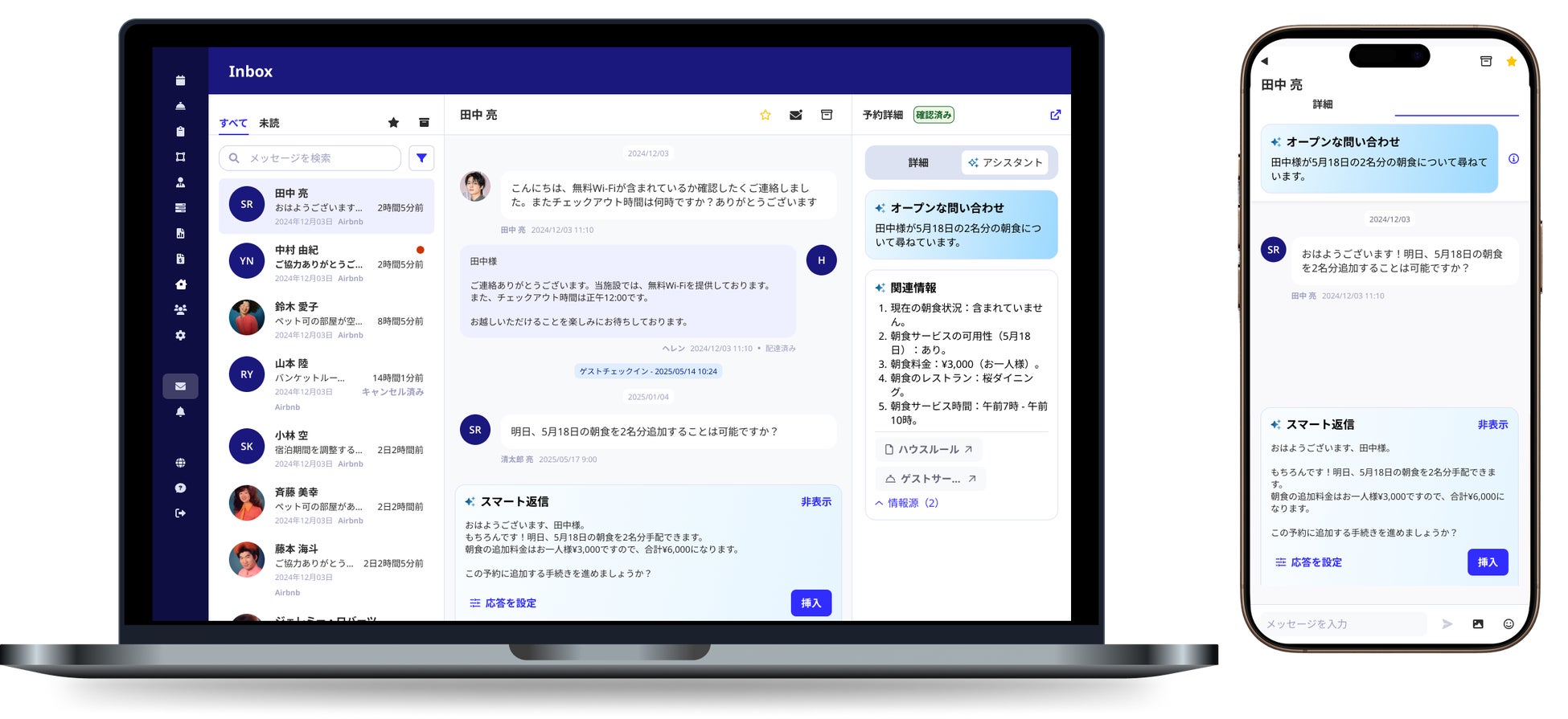 宿泊・民泊業界では、人手不足の中で1日数十件に及ぶメッセージ対応が大きな負担となり、多施設を運営する企業では「メッセージ専任チーム」を置くほどの課題となっています。