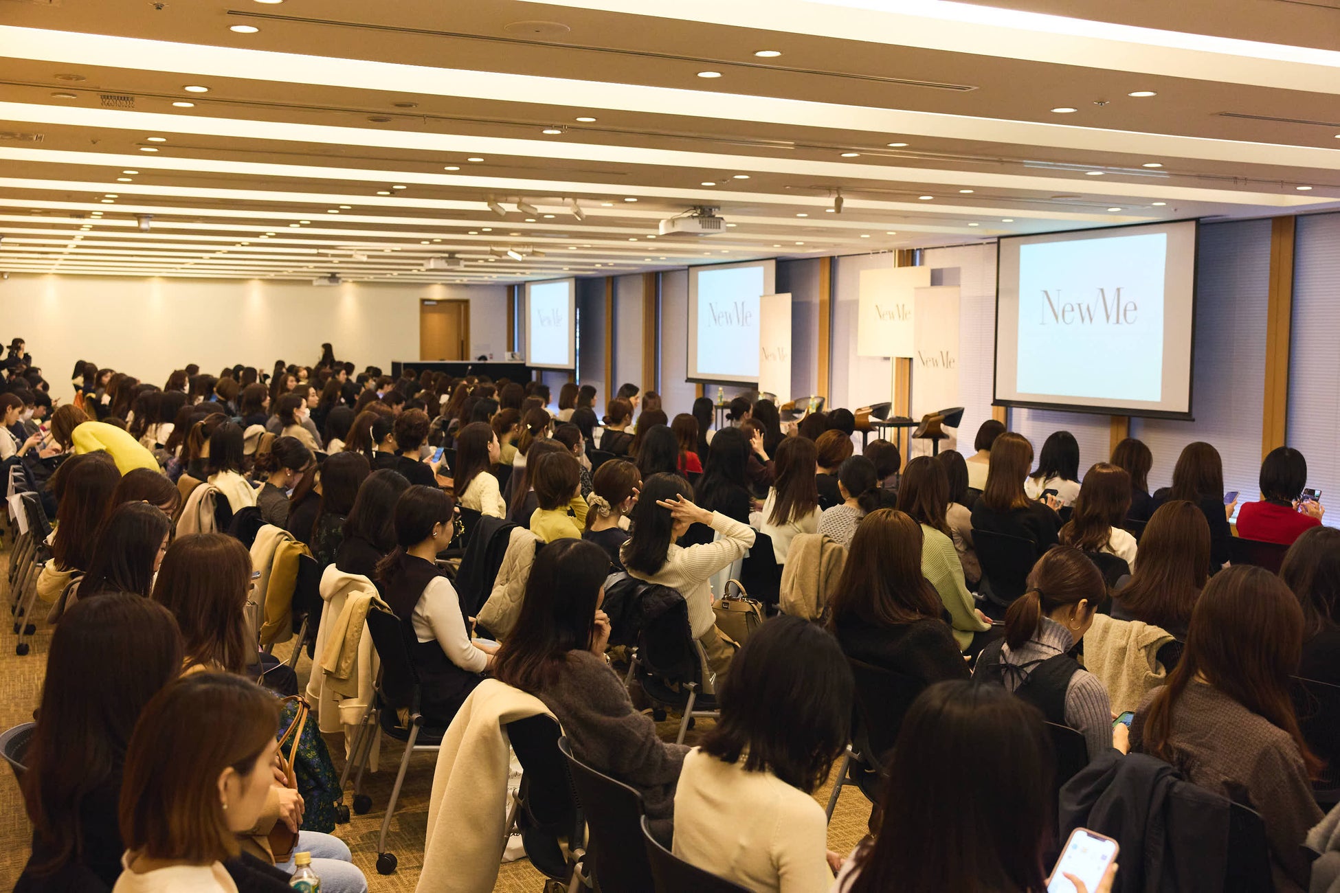 本イベントは、NewMe株式会社のビジョンに興味をもって下さった20代から30代の女性たち200名を迎え、オリジナルのキャリアを築いてきた多様な先輩たちのトークセッションを通じ、ご自身のキャリアについて考える機会と可能性を広げるヒントを得て頂くことを目的に開催しました。Session1では株式会社GENDA代表取締役社長の申真衣さん、広告代理店勤務の山田茜さんを迎え、新時代の働き方についてディスカッションが行われました。Session2では、転職経験者や社内でキャリアチェンジした方、実際に多様な働き方を重ねてきた3名の女性の実体験を伺いながら、オリジナリティのある働き方について考えました。