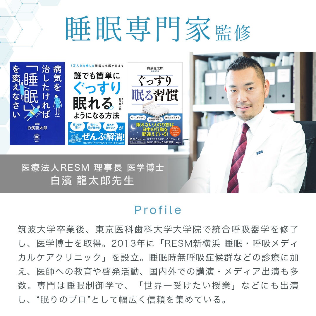 睡眠専門医・白濱龍太郎氏(医師/医学博士)監修のもと、デスクやソファでも使いやすい立体構造に仕上げました。