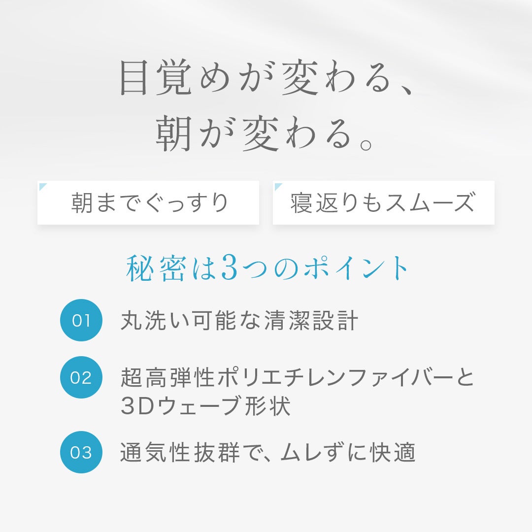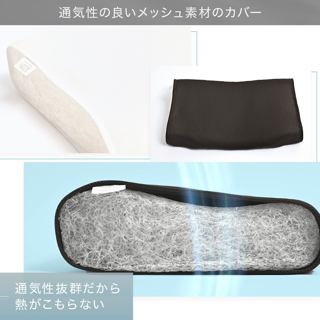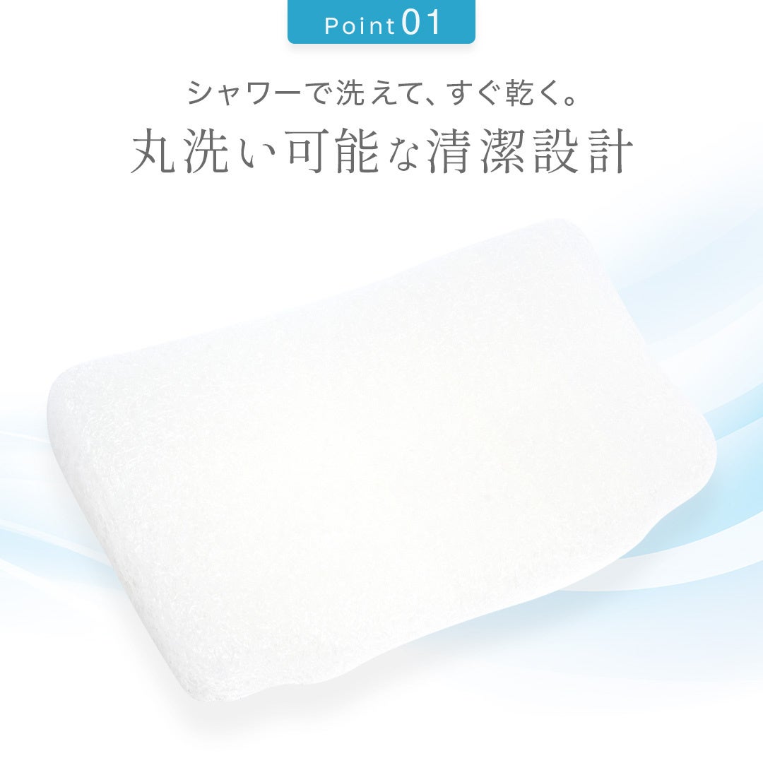 3Dウェーブ形状と超高弾性ポリエチレンファイバーが、頭・首・肩にやさしくフィット。