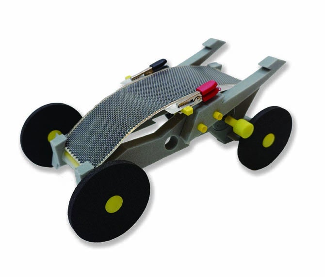 太陽の力で走るソーラーカーのキットを組み立てます。