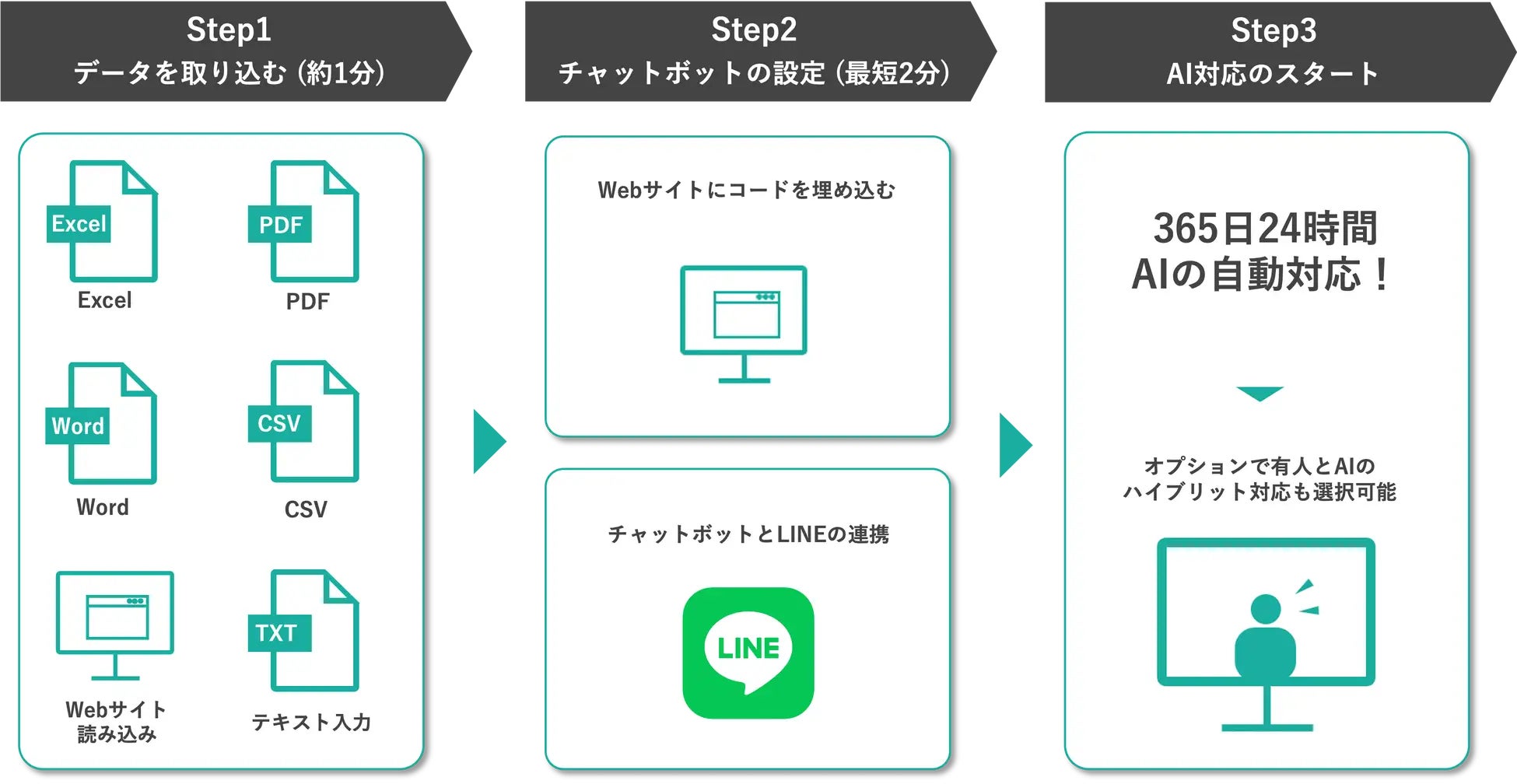 AIだけで対応しきれない場合は、オペレーターがすぐにチャットへ参加可能