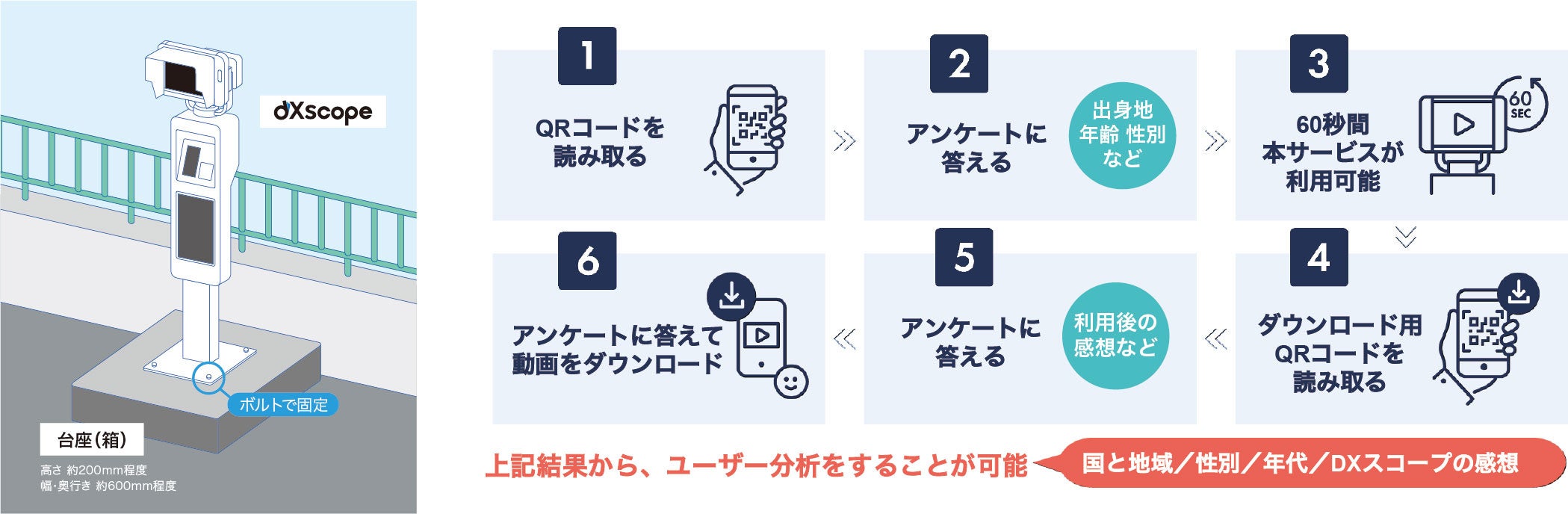 「dXscope」のデジタル機能を活用し、利用者のデータを一定期間収集・分析、国内外観光客(特に訪日外国人観光客)の実態を把握、今後の観光事業戦略への利活用の可能性を検証します。
