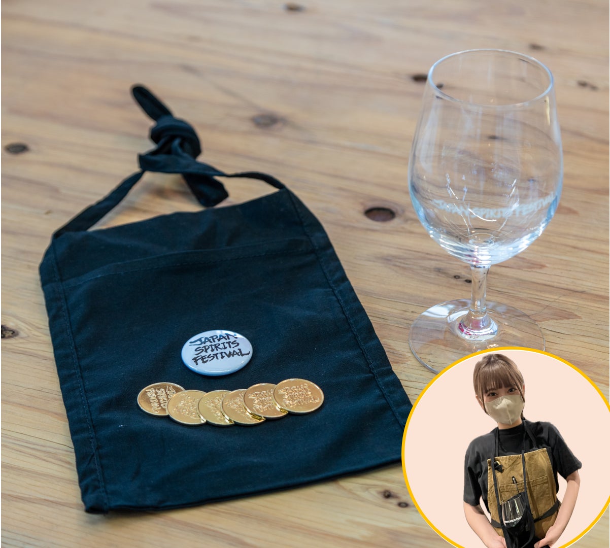 ①スターターセット購入 [オリジナルグラス・グラスサコッシュ・缶バッヂ・コイン×6枚]をGET! (前売チケットを購入の方は、QRコードでスムーズにイベント参加が可能です!)