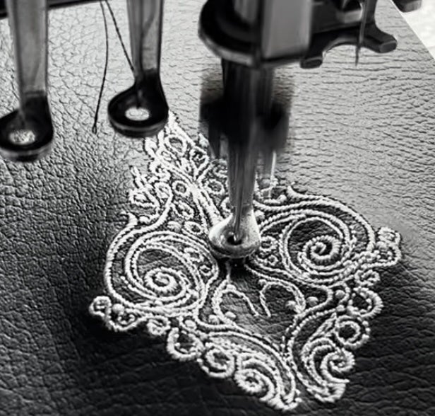 私たちは革製品への刺繍を長年得意としてきました。