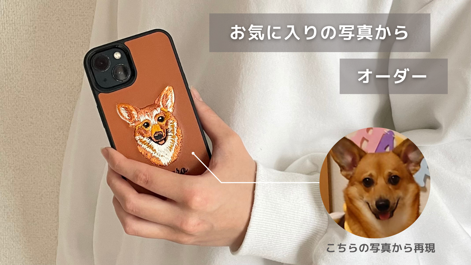 そこで、刺繍特有の「ぬくもり」と私たちの技術で生み出す「立体感」でまるでそこにいるかのようなスマホケースが誕生しました。