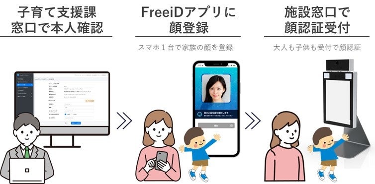・利用方法:①亀岡市役所子育て支援課窓口で本人確認を実施の上、FreeiDサービスへの招待を実施