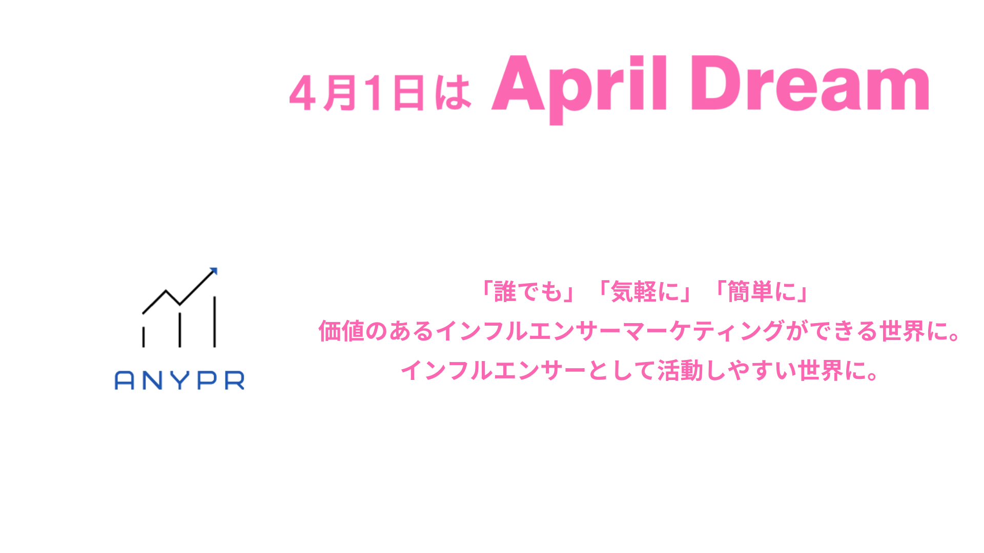 このプレスリリースは、April Dreamプロジェクトに共感し、4月1日を夢があふれる日にしようとする事業者が、やがて叶えるために発信した夢です。