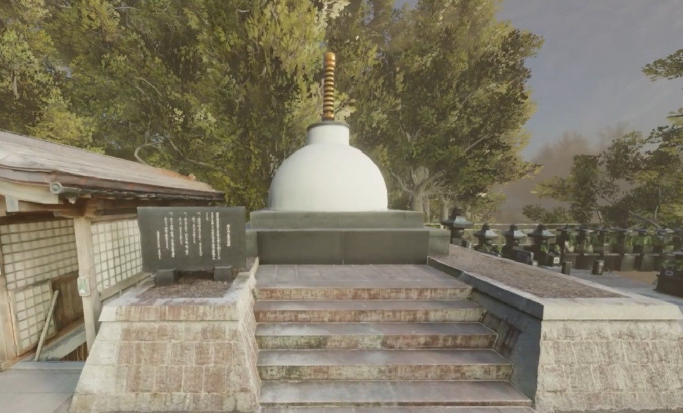 コンテンツのトップ画面でIDとPWを入力すると、実在する納骨堂内のそれぞれの位牌の場所まで、まるで実際に訪れているような3D映像と質感で自動誘導します。位牌の前までくると、読経が流れます。