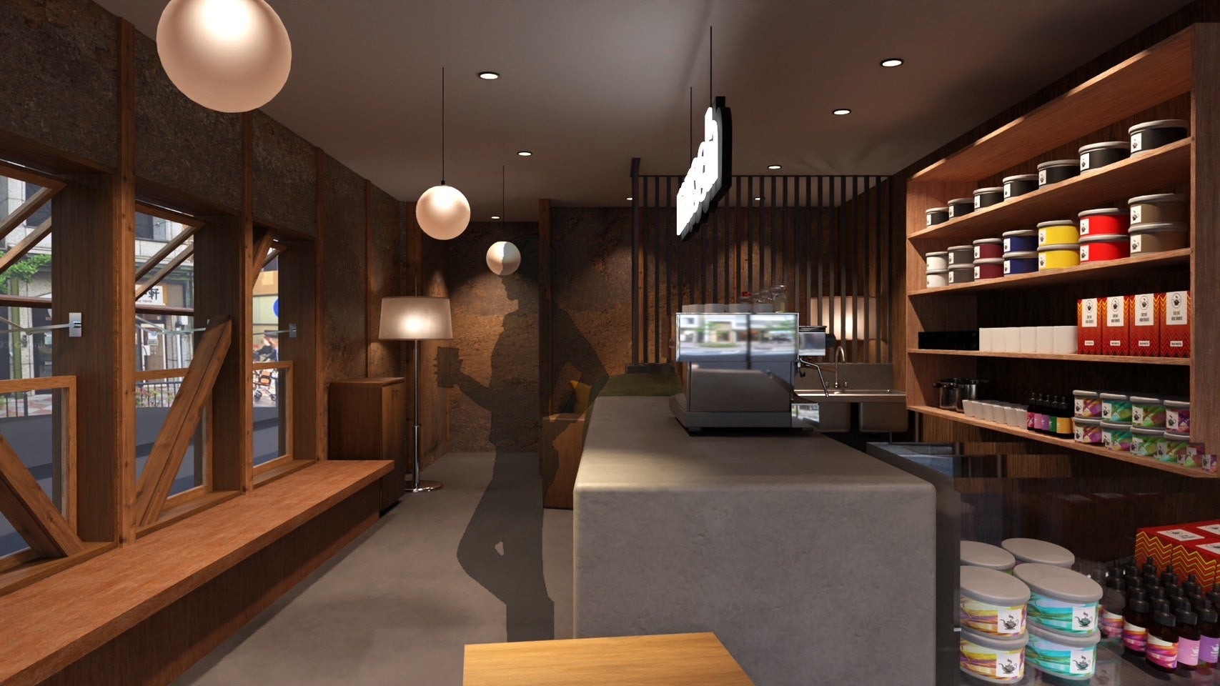 店内は木を基調とした落ち着きのある空間をベースに、カウンターには藻を模した装飾や、1階奥には小上がりでカフェやシーシャを楽しめるスペースを確保し、見ても座っても楽しめる空間となっております。