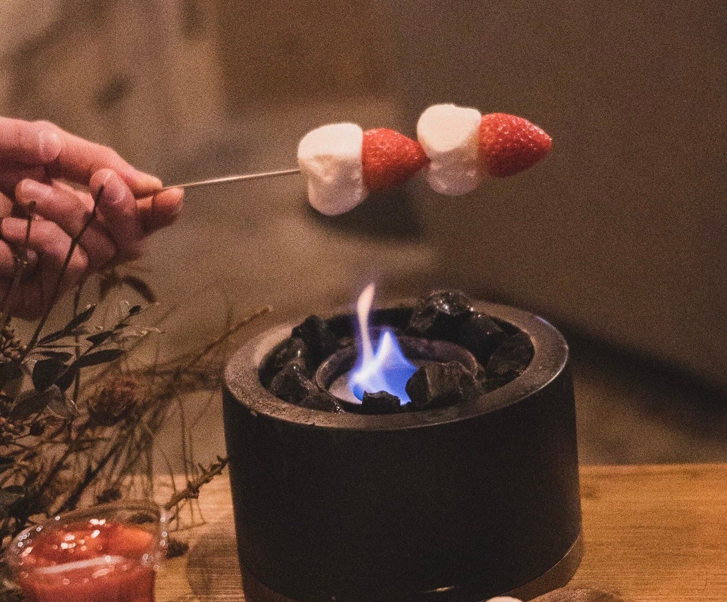 暖炉の火で焼きマシュマロを作る体験ができる人気の商品が、京都河原町店でもお楽しみいただけます。