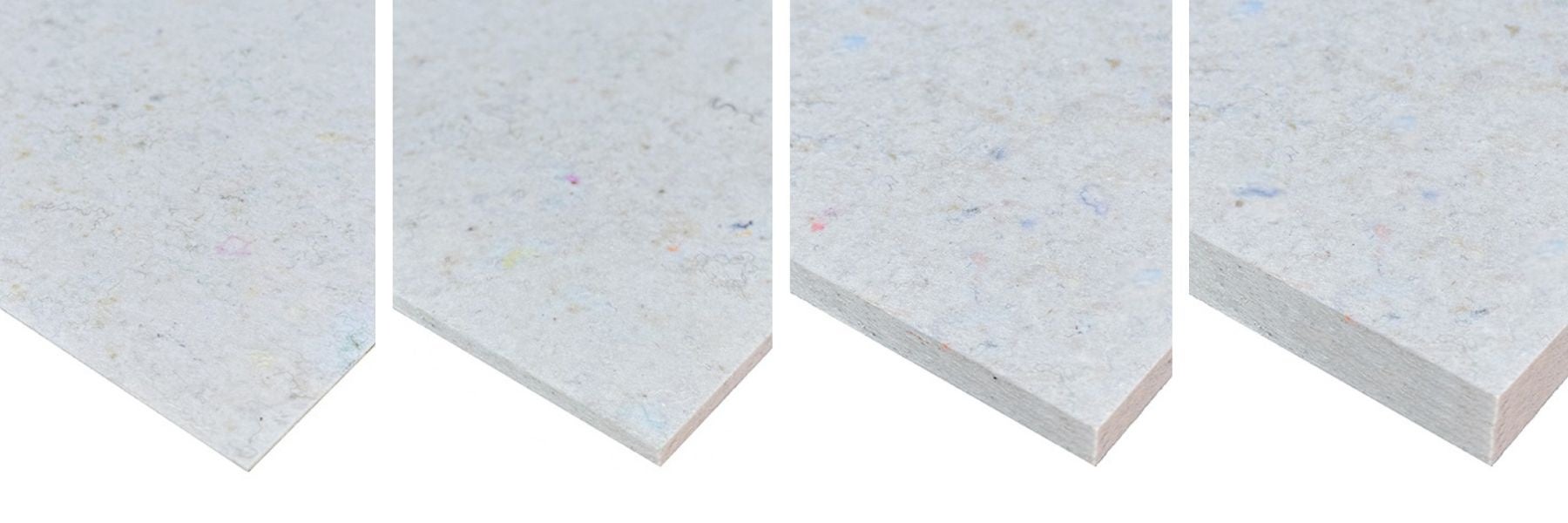 使いやすい繊維リサイクルボードをコンセプトにした新色となる"ホワイト"が完成。カラーバリエーションへの対応により、もっと身近でサステナブルな素材へ