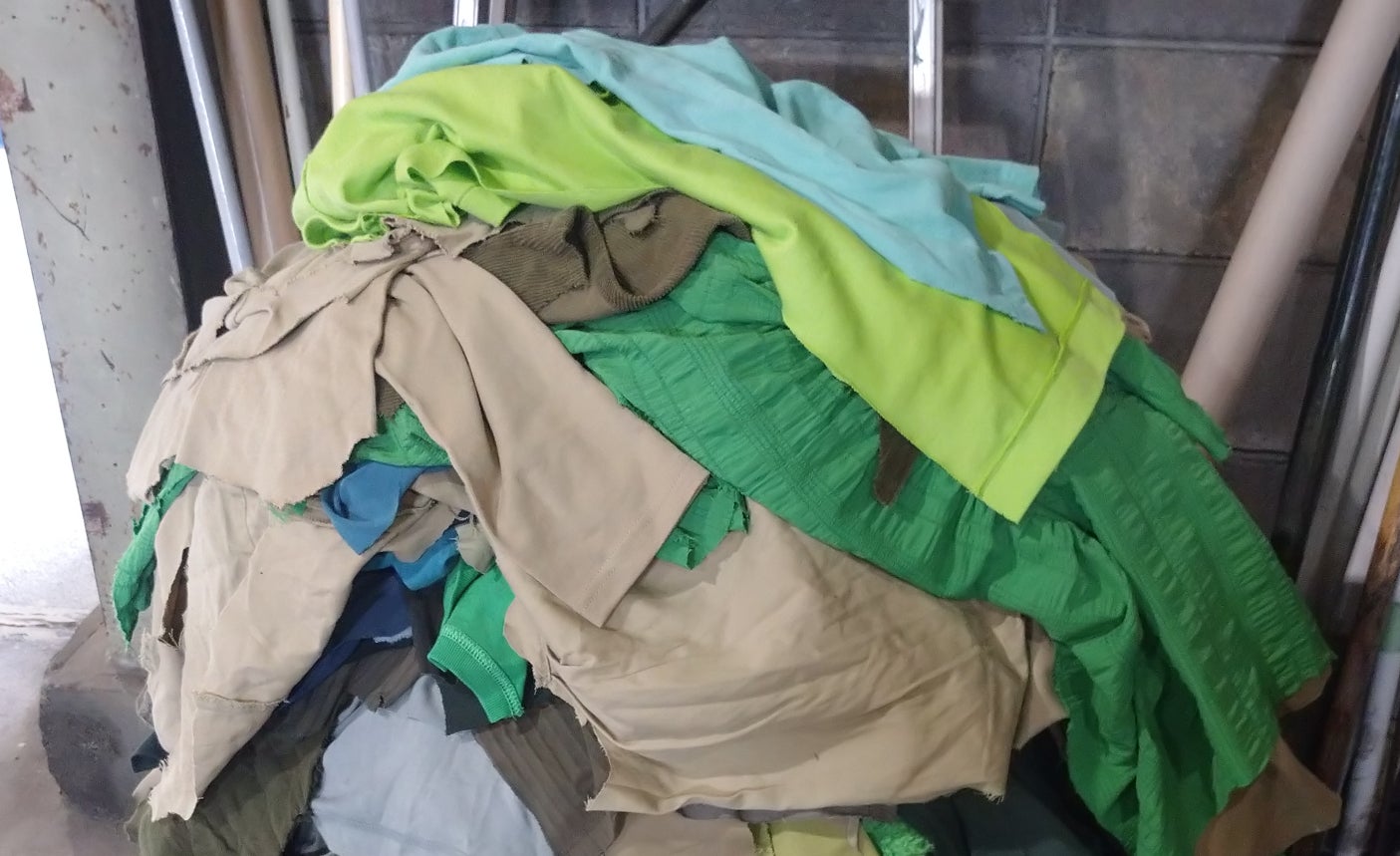 また、GREEN FLAGではお客様がご希望する色味のボード製造はもちろん、お客様が集めた繊維製品を原料にしたオリジナルボードの製造も承っております。自社で排出される不用になった作業服、ユニフォーム、エプロン、リネン、のぼりなど、最小で60kg程度ご用意いただくことで、試験的にオリジナルボードの製造にチャレンジできる環境も整えております。製造したオリジナルボードは、お客様の展示会の資材、社内の備品や家具制作、ノベルティ製造など、アウトプットの方法は多岐にわたりますので、まずは一度ご相談ください。
